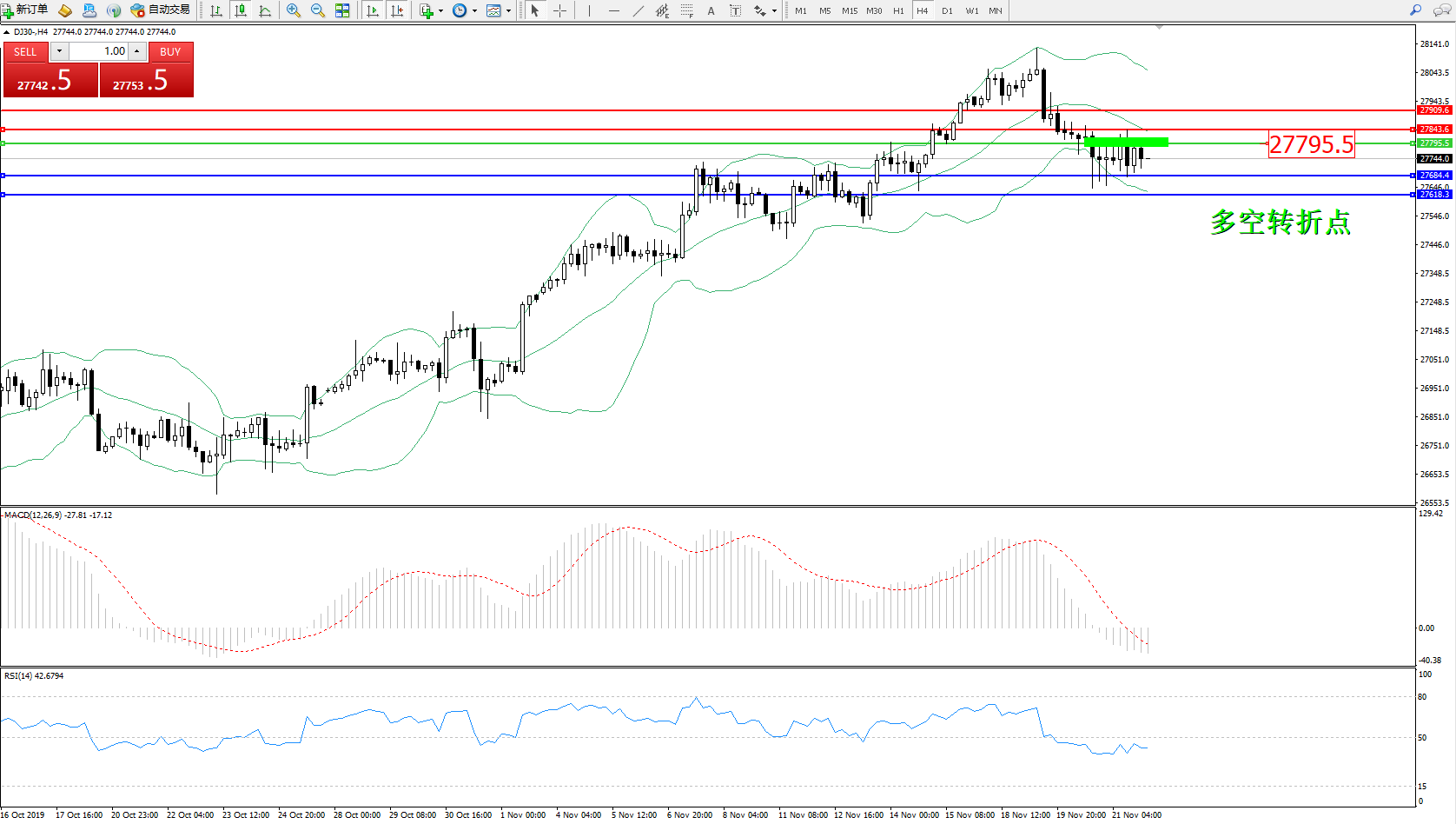 道琼斯指数11月21日(周四)收盘下跌54.80点,跌幅0.20%,报27766.29点。最近几周投资者对达成协议的可能性越来越乐观,但最近几天,中美双方的贸易言论都趋于强硬,令投资者感到不安。这些消息的影响相互抵消,实际上对市场不利,目前,股市非常依赖贸易消息。