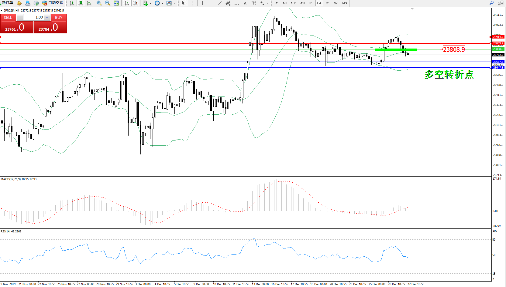 日经225指数12月27日(周五)收盘下跌67.92点,跌幅0.28%,报23857.00点。日本央行必须修改其对利率的前瞻指引,以实现央行物价目标。日本央行必须在指引中加强与物价目标的联系。最近利率有所上涨,可能意味着当前政策或许还不足以刺激经济。按照IMF提议,将物价设定为一个区间,可能削弱日本央行实现物价目标的承诺。日本央行在2014年提高消费税时扩大了量化质化宽松(QQE)规模,可能需要再次扩大规模,但取决于消费趋势。