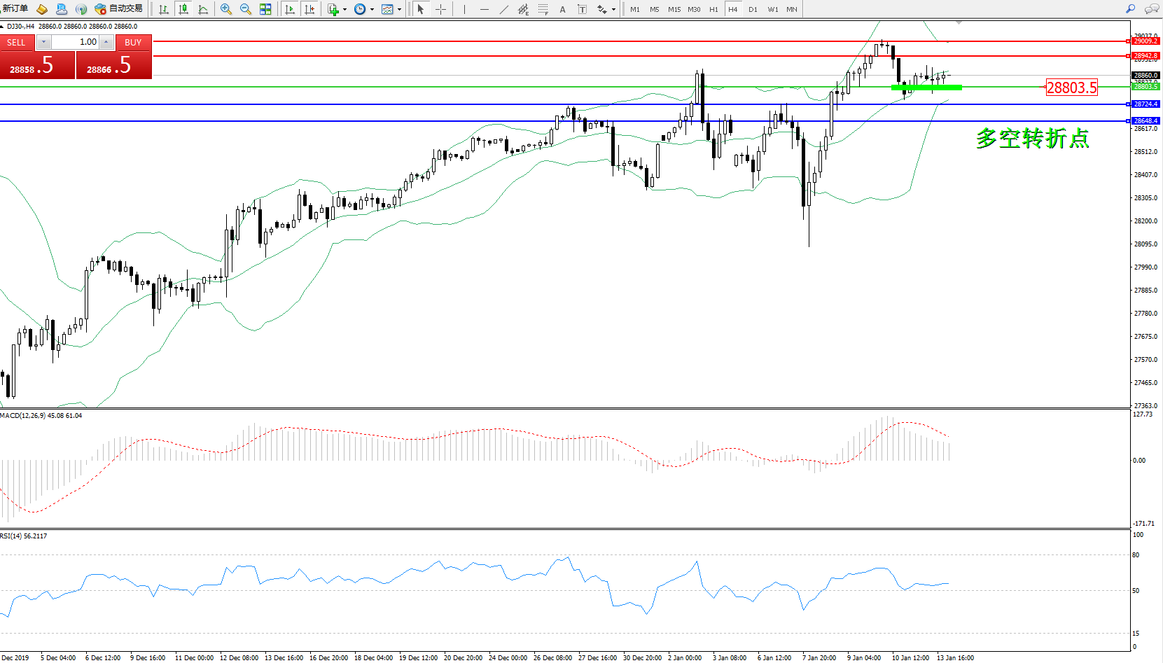 道琼斯指数113日(周一)收盘上涨82.50点,涨幅0.29%,报28906.31点。随着美国股市攀升,市场重回风险偏好升温的模式,财报季拉开帷幕以及美中签署第一阶段贸易协议预计本周将主导市场。地缘政治紧张局势升级的风险消除,消费者超级强大,经济虽在放缓但依然强劲。美联储持观望态度。现在与中国相关的消息也退居次席,在伊朗问题上,也避免了局势恶化。因此,现在的状况是没有重大新闻,一切似乎都好。