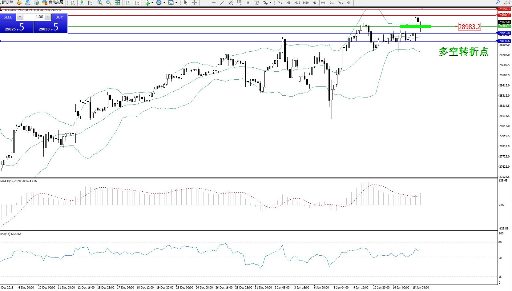 道琼斯指数1月15日(周三)收盘上涨90.90点,涨幅0.31%,报29030.55点。全球主要股市指数攀升至纪录新高,美元兑一篮子主要货币走软;美国和中国签署了初步贸易协定,将降低一些关税,并促使中国购买更多的美国商品和服务;不过,该协议将保留对美国制造商使用的价值2500亿美元的中国工业产品和零部件征收25%的关税。