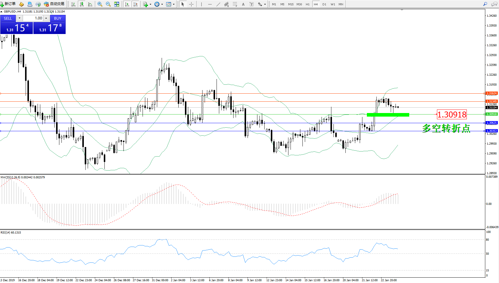 备选策略:1.30918上方看涨,目标1.313491.31624