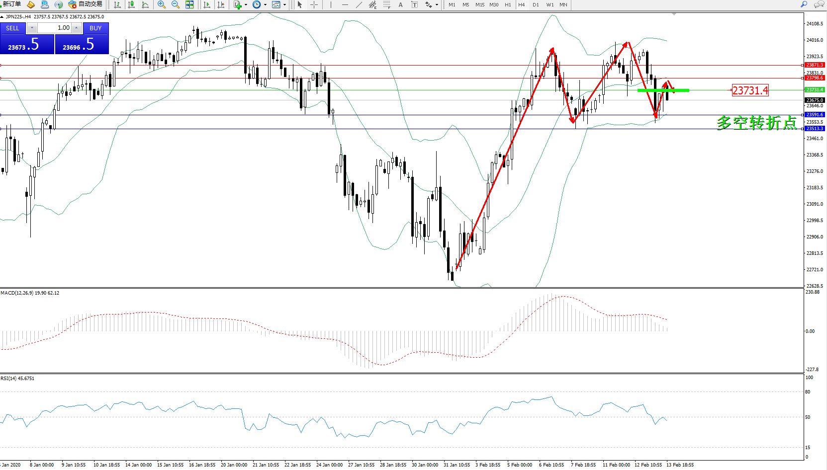 日经225指数213日(周四)收盘下跌51.21点,跌幅0.21%,报23810.00点。日内投资者对亚洲公共卫生事件的担忧情绪再度升温,国内股市有所承压,而亚洲多数股票市场也走低,商品货币也集体下跌,此前投资者短暂的乐观情绪很快消散,对于不确定性的顾虑仍使得资金逃离股市,日内美债收益率再度回落也强化了这一情绪,短中期疫情进展对全球市场的冲击仍是焦点。