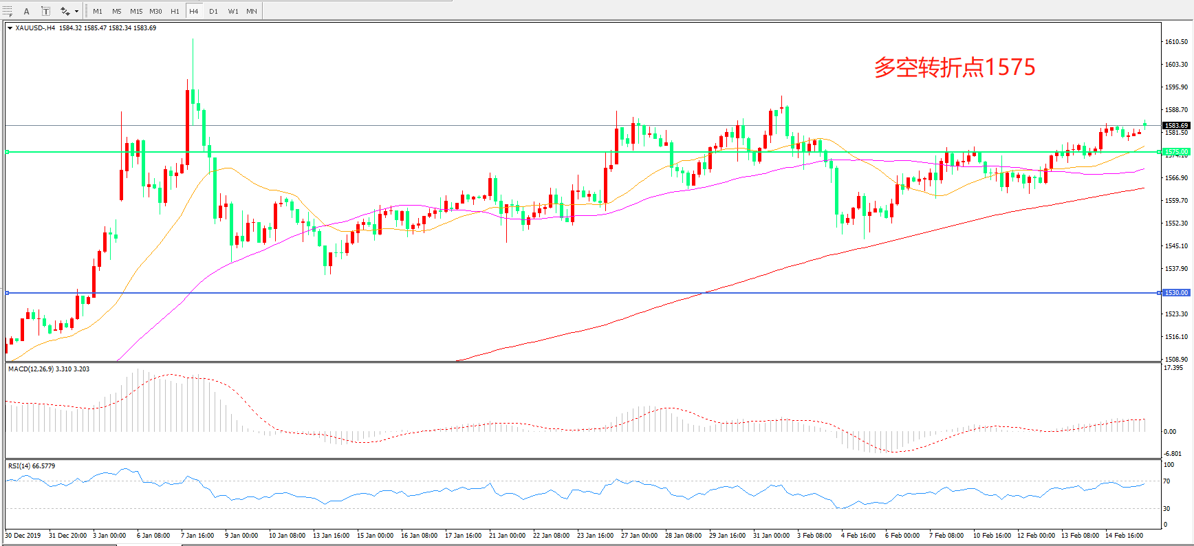 周一(2月17日),虽然对新冠疫情的担忧有所缓和,但全球经济放缓的担忧仍然在持续蔓延。中国央行顺势下调MLF(中期借贷便利)进一步释放了货币政策在疫情期间加大逆周期调节力度的信号。全球央行维持宽松政策的预期仍然十分明显,金价小幅回升,收报1584.55美元/盎司。