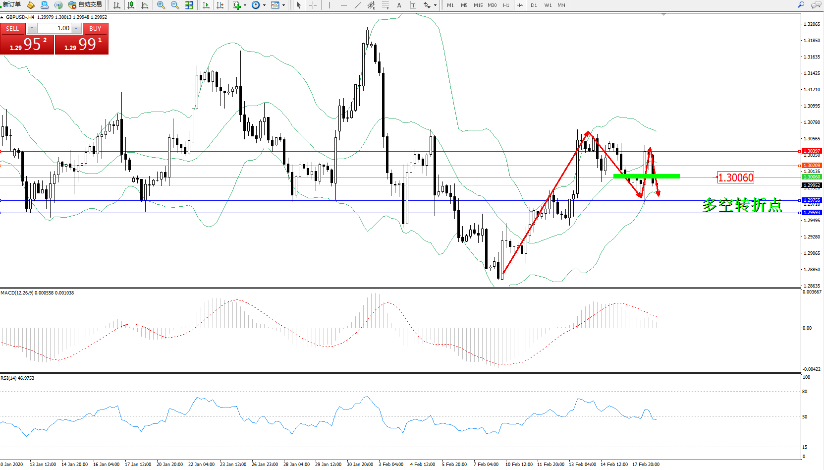 交易策略:1.30060下方看跌,目标1.29755、1.29593
