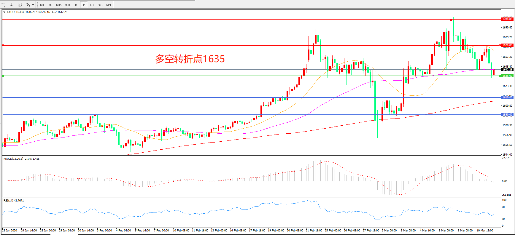 周三(3月11日),美国总统特朗普表示,他将要求国会采取削减工资税和其他“非常重大”的刺激措施,美元受此提振,绝地反弹,金价大幅回落,收报1640.50美元/盎司。