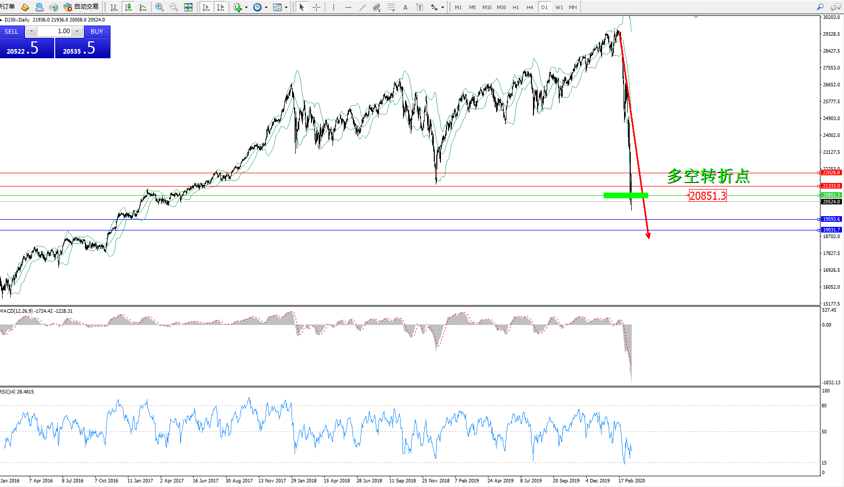 道琼斯指数3月16日(周一)收盘下跌2999.00点,跌幅12.93%,报20186.65点。美股今日暴跌,道指开跌约2200点,触发熔断,全市场开盘后立即暂停交易15分钟,恢复交易后道指跌幅有所收窄,但尾盘继续下行,险守二万点关口,除黄金、白银板块外几乎全线板块走低,航空股、科技股大幅疲软。虽然美联储降息至近零水平并部署大规模购债,但未能缓解投资者对疫情冲击经济的担忧;全球股市暴跌,美股创下1987年以来最大跌幅。虽然美联储降息至近零水平并部署大规模购债,但投资者继续大声疾呼,要求庞大的支出计划,来抵御学校、餐馆、影院和体育赛事关闭给经济带来的冲击。像这样大规模的刺激政策会支撑风险资产并支持经济复苏,但是疫情对经济的冲击正在成倍上升,市场理所当然地质疑货币政策还能做什么,并削弱了刺激政策缓解下行风险的有效性。