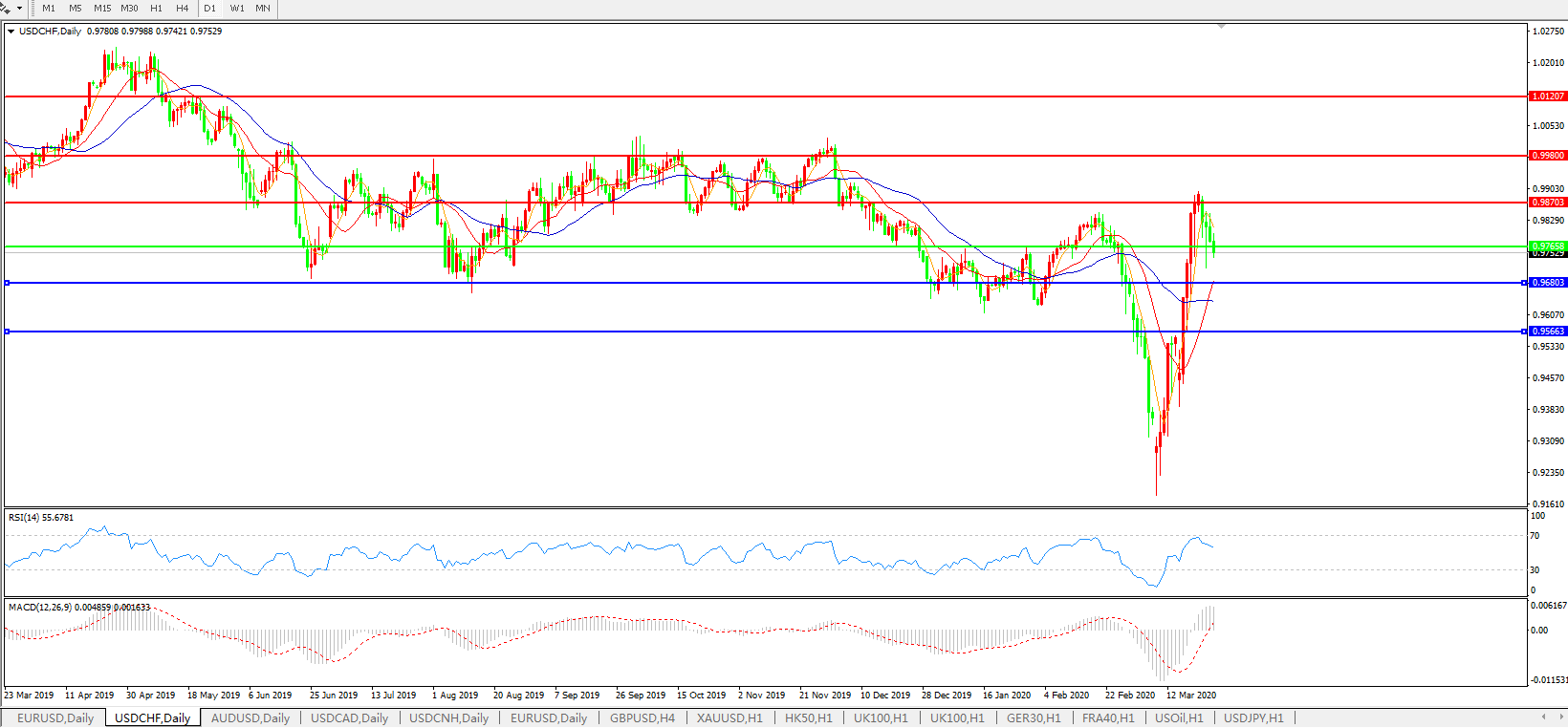 交易策略:0.9765下方看跌,目标0.9680、0.9565