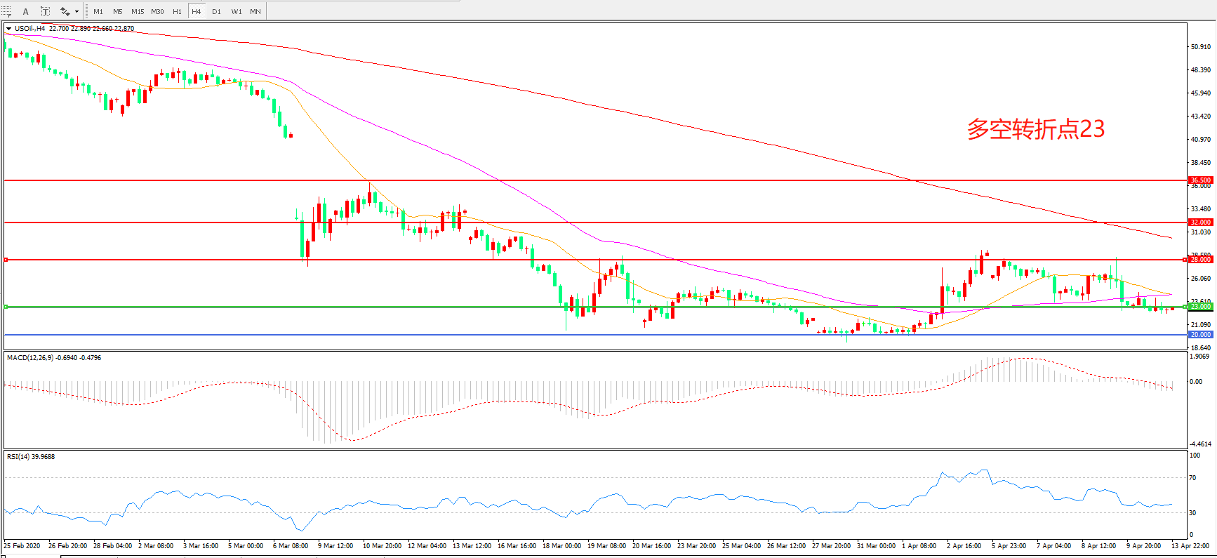 周一(4月13日),OPEC宣布欧佩克与非欧佩克产油国当天达成石油减产协议,油价一度涨超8%,但市场仍然认为减产幅度可能不足以抵消疫情对需求造成的打击,WTI原油震荡回落,收报22.79美元/桶。