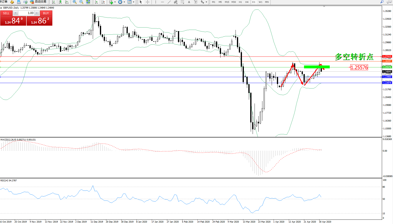 交易策略:1.25576下方看跌,目标1.239001.22878