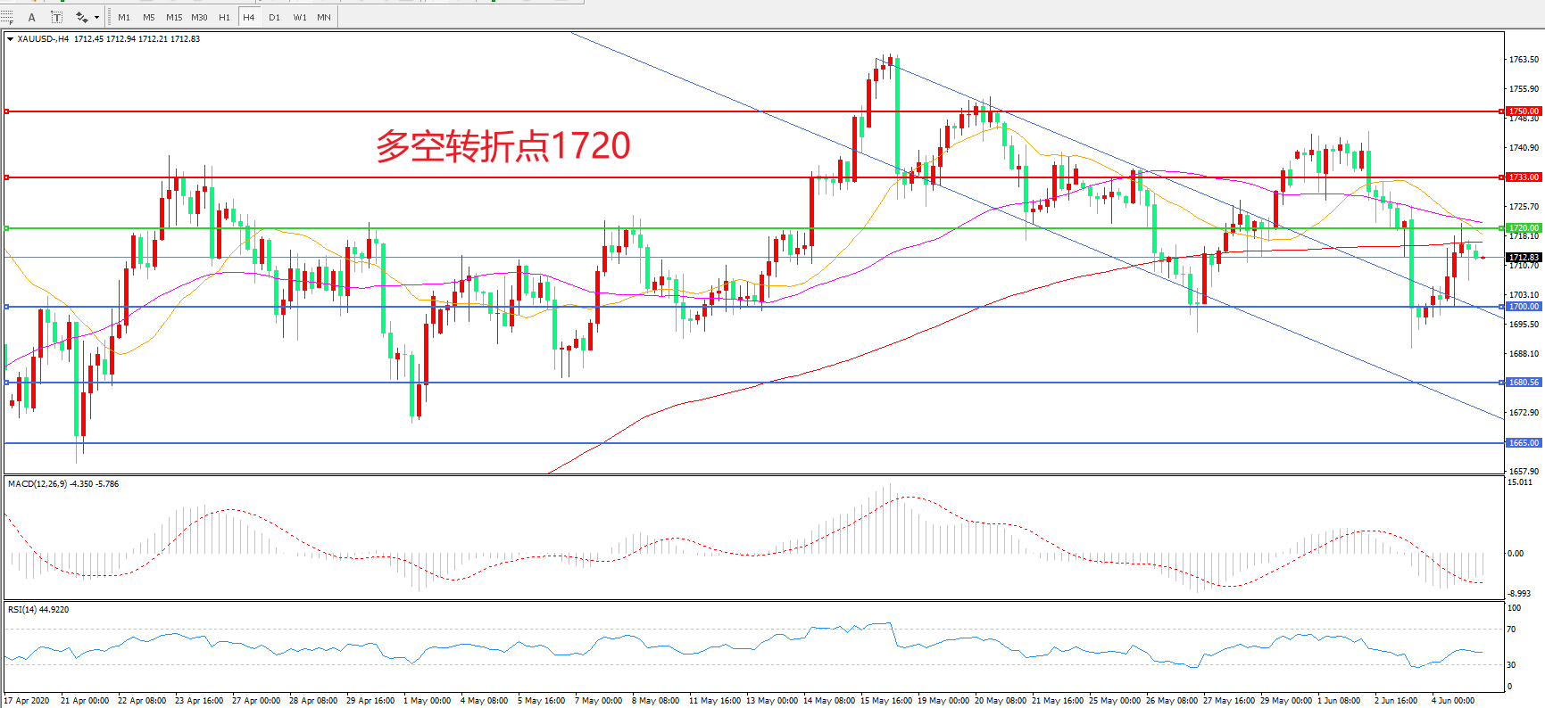 交易策略: 在1720.00之下看跌,目标1700.00 1680.00