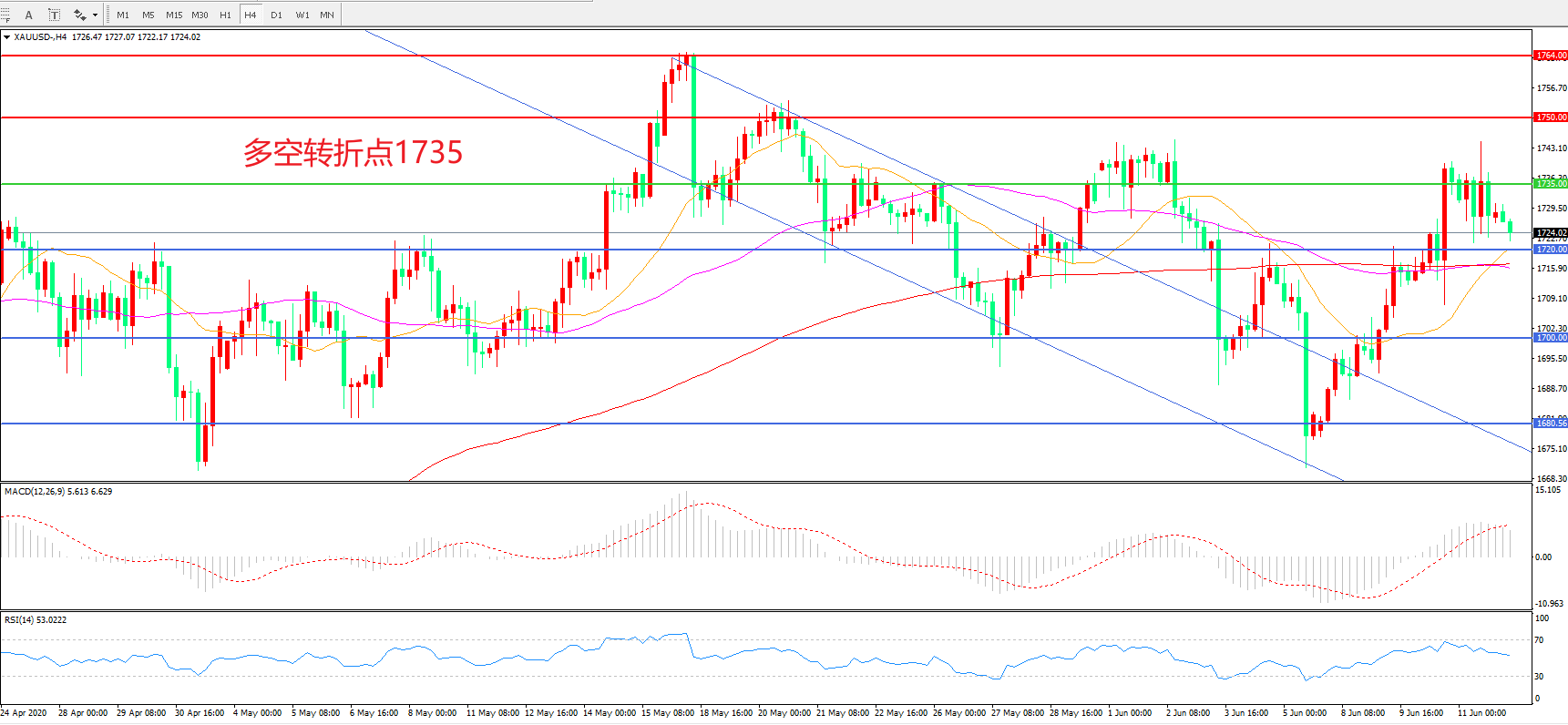 交易策略:在1735.00之上看涨,目标1750.00   1764.00