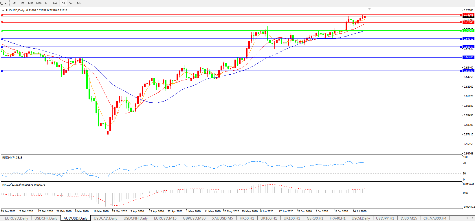 交易策略:0.7000上方看涨,目标0.7100、 0.7200