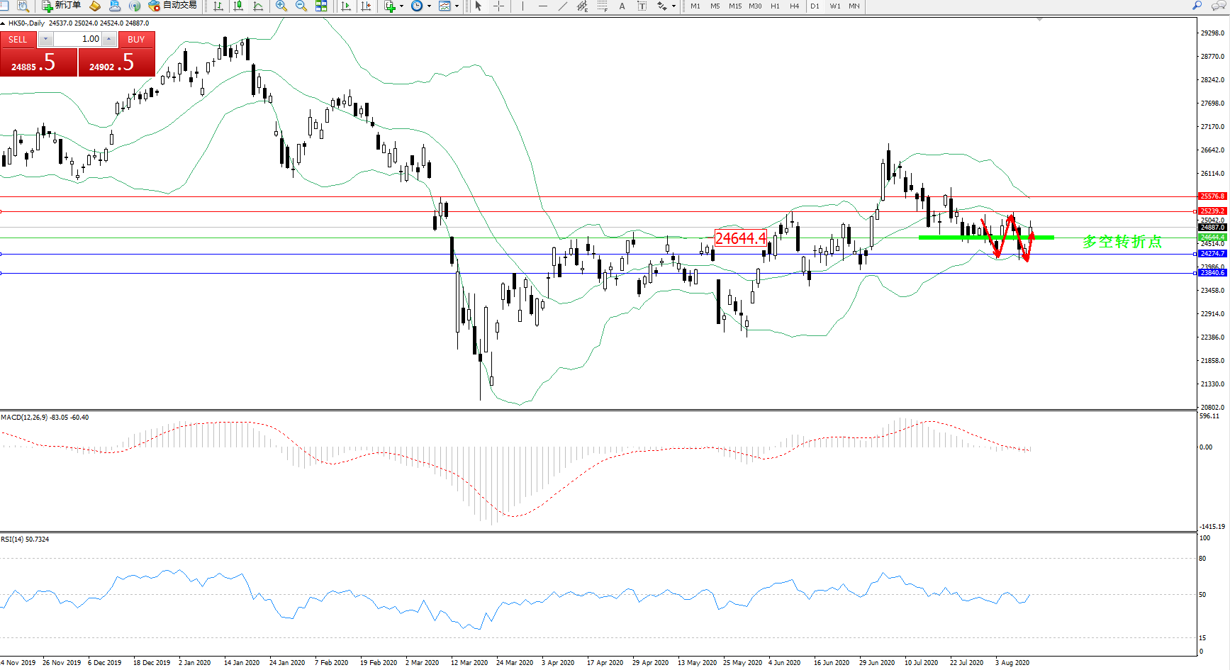 香港恒生指数8月11日(周二)收盘上涨513.25点,涨幅2.11%,报24890.68点;港股三大指数大幅收涨,恒指盘中一度升至2.7%,创一个月以来单日最大涨幅,餐饮股集体爆发,海底捞大涨13%创新高;濠赌股延续强势,金沙中国大涨近10%;。今日南下资金净流入19.02亿港元,大市成交额为1413亿港元。南下资金连续11日净买入美团点评(3690.HK) 累计超68亿港元,据香港电台消息,香港特区卫生防护中心传染病处主任张竹君表示,香港新增新冠肺炎确诊病例33例,单日新增连续9天少于100例。其中本地确诊32例。目前,香港累计确诊4180例。