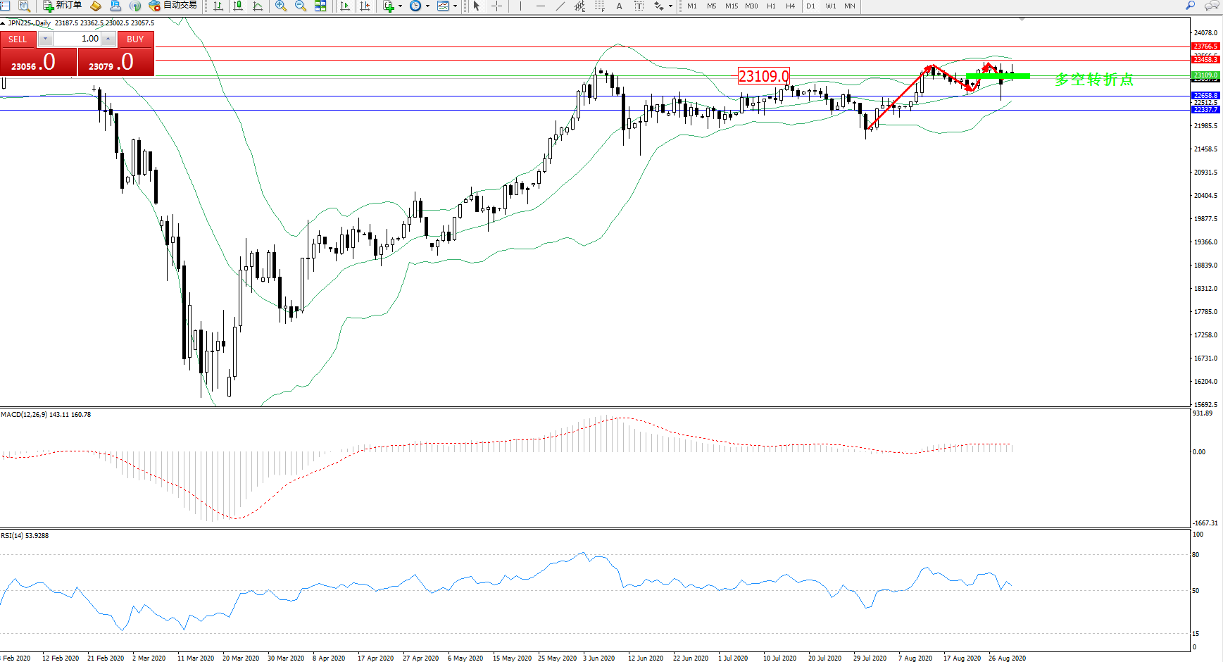 日经225指数8月31日(周一)收盘上涨274.85点,涨幅1.20%,报23157.50点。日本首相安倍晋三辞职后,在自民党主席选举之前将带来额外的市场不确定性。但全球股市依旧高涨,日本自民党将在9月14日举行新任主席选举,尽管安倍首相宣布辞职,但安倍经济学框架和日本央行货币政策可能会保持不变。日经225指数进一步上涨空间很小,也不建议投资者在这一消息公布后抛售日本债券,尽管日本政府债券的疲软可能会持续到新首相上任,日本经济产业省METI:日本7月汽油销量同比下滑6.1%。7月原油进口同比下滑31.9%。7月石油产品销售同比下滑8.4%。7月煤油销售同比增长18.9%;安倍晋三与特朗普电话会谈称,日美同盟的重要性不会改变。这是安倍和特朗普自5月8日以来首次举行电话会谈,也是安倍在8月28日正式宣布辞职后首次与外国领导人进行电话会谈。