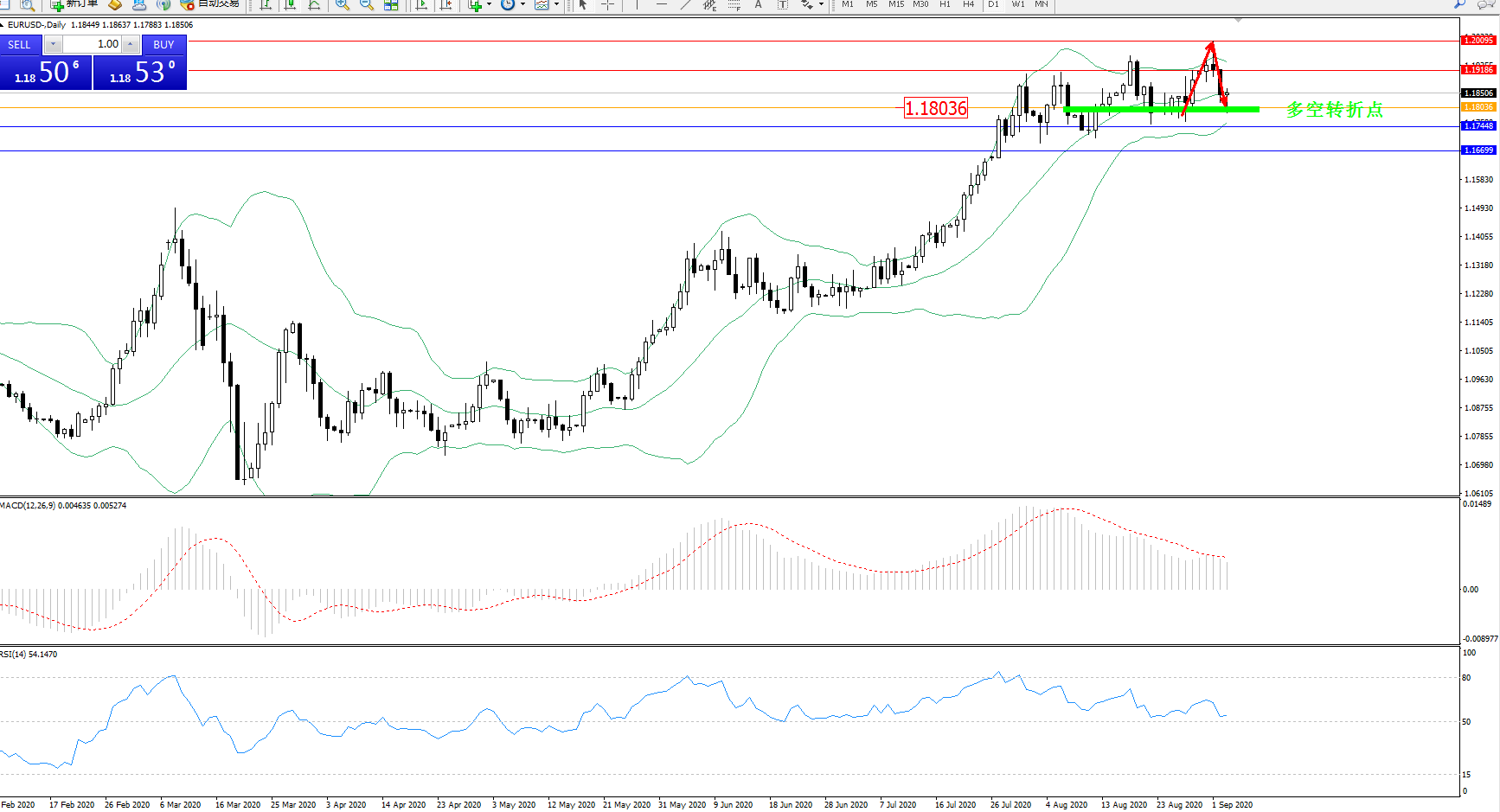 交易策略:1.18036上方看涨,目标1.19186、1.20095