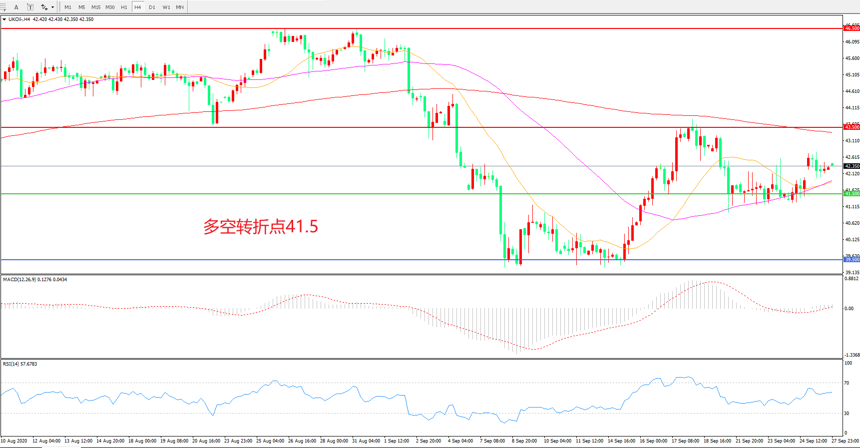 交易策略:   在41.50之上看涨,目标43.50      46.50