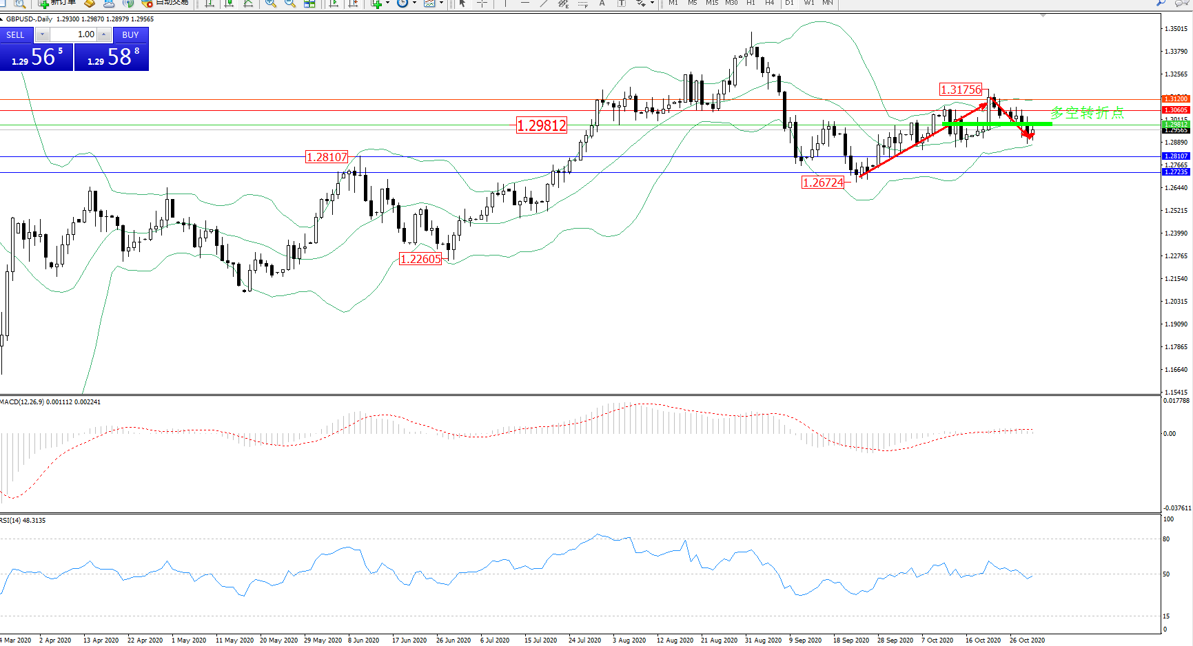 备选策略:1.29812上方看涨,目标1.30605、1.31200