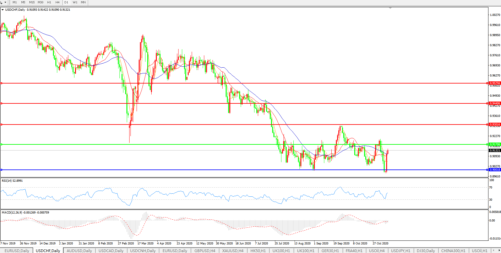 美元兑瑞郎USDCHF 日线图: