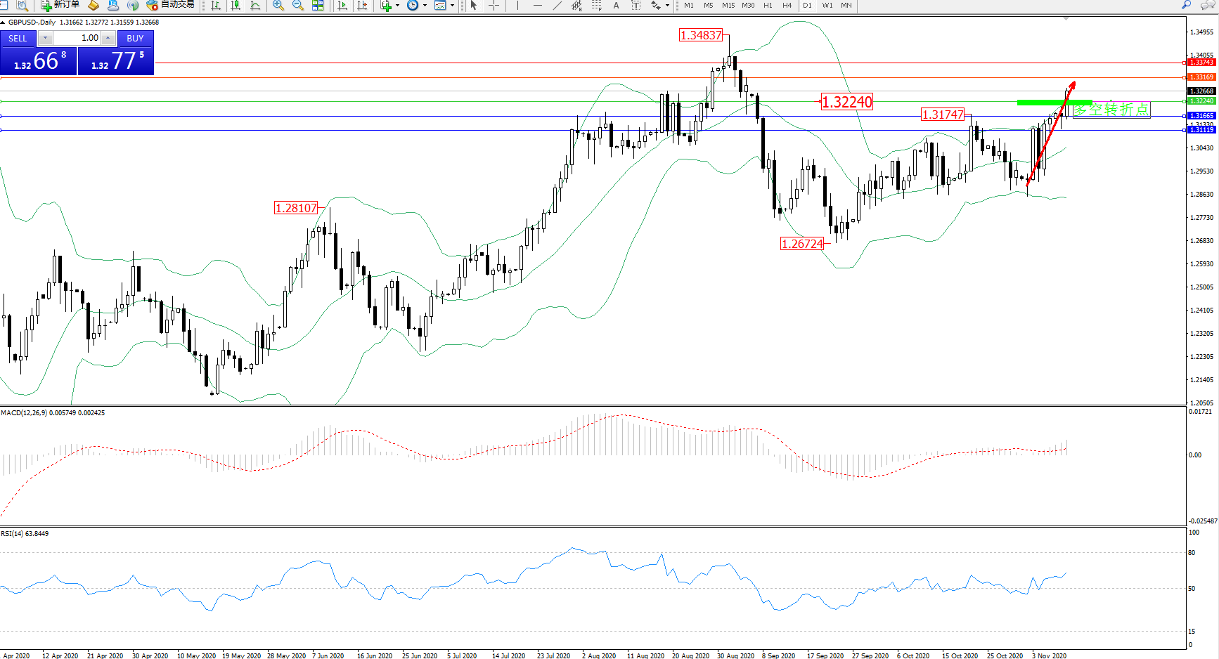 交易策略:1.32240上方看涨,目标1.33169、1.33743