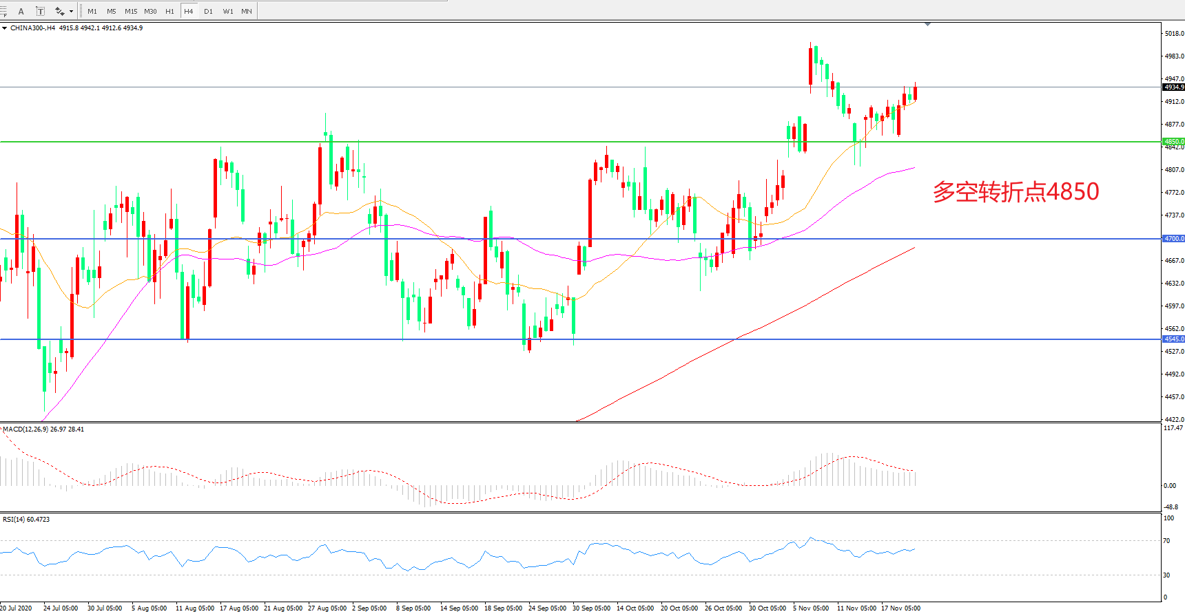 交易策略:在4850.00之上看涨,目标5000.00 5150.00