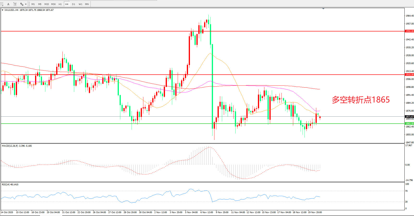从后市来看,货币与财政政策仍将是影响贵金属行情的核心变量,因为即使新冠肺炎疫苗推出,其推广与生效仍需时日,而对经济的提振作用需要更长时间显现,担负起市场的焦点仍然是美国两党财政刺激谈判的结果,不过因为本周后半段欧美市场因感恩节休市,预计短期市场交投会比较清淡。
