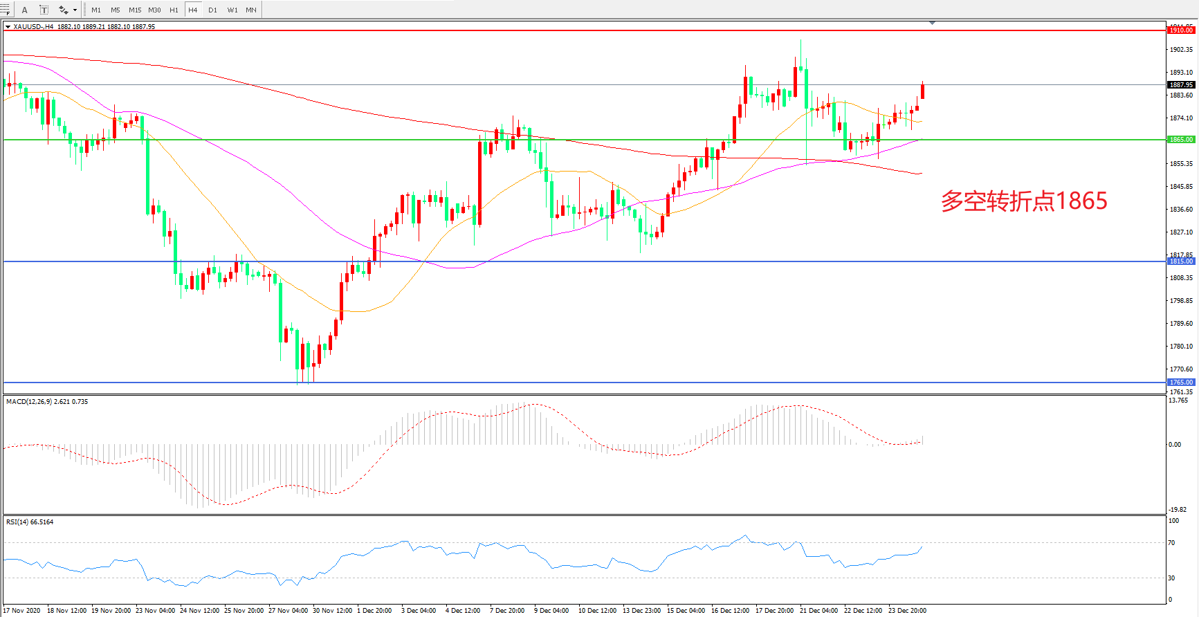 交易策略:在1865.00之上看涨,目标1910.00   1950.00