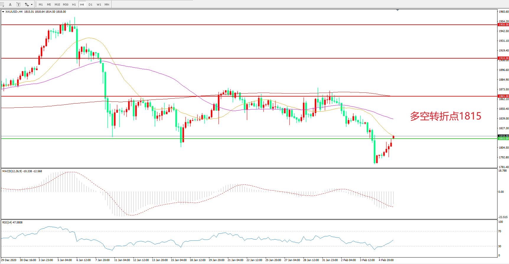 交易策略:在1815.00之下看跌,目标1765.00 1710.00