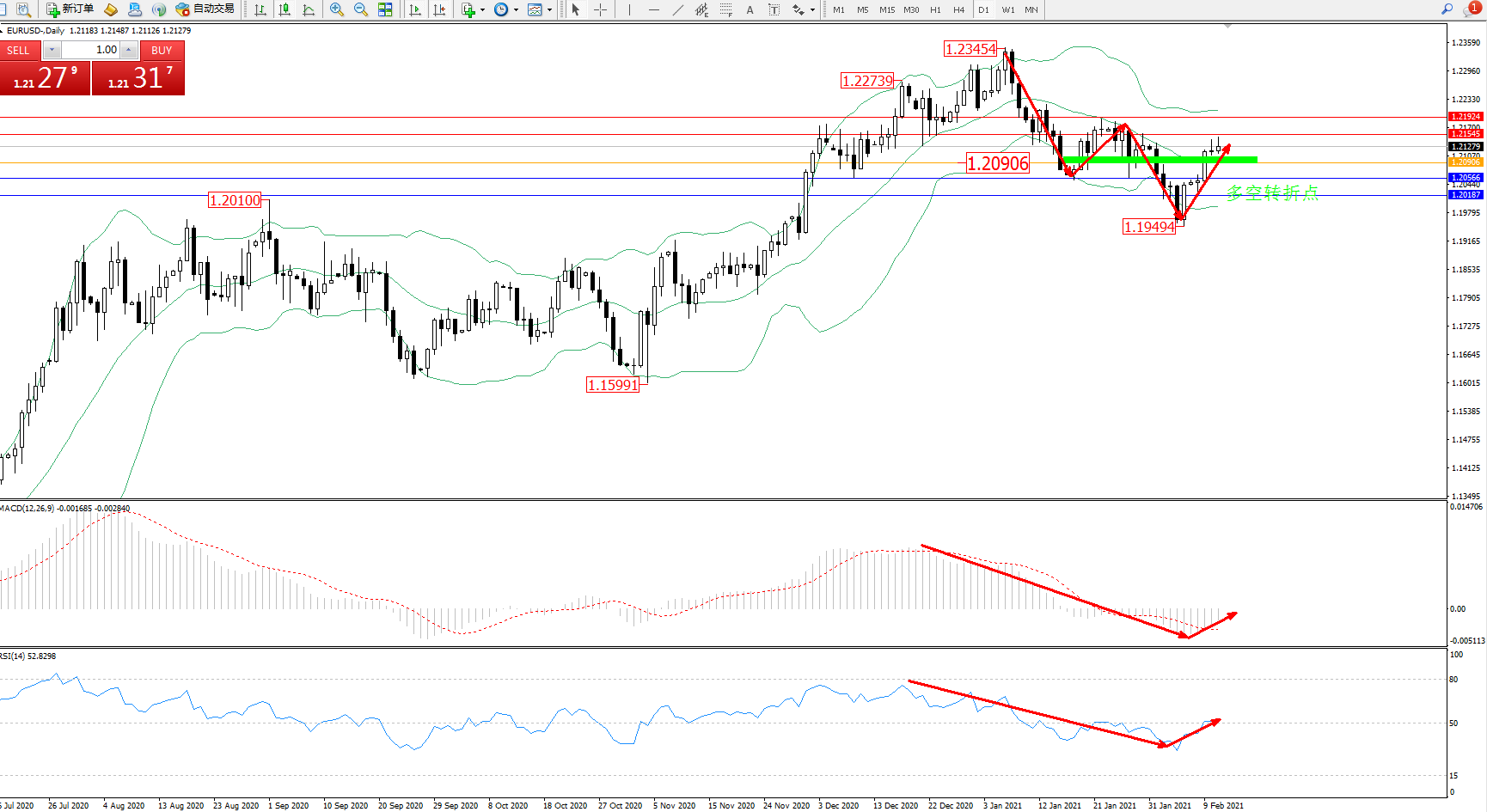 交易策略:1.20906上方看涨,目标1.21544、1.21924