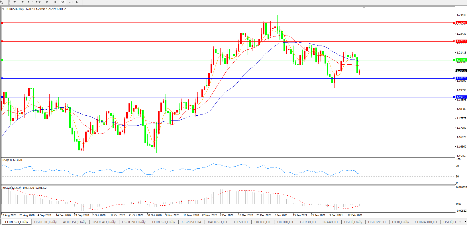 欧元兑美元在周三日内延续跌势,进入欧洲时段后跌幅加速,触及2月9日以来逾一周新低1.2059,因美元指数日内进一步走强。此外,德国卫生部长此前在讲话中称,变种新冠病毒正在德国境内快速传播,这令此前一度趋于乐观的市场情绪再度恶化,而投资者面对欧元区低迷的新冠病毒疫苗接种率,也无法重新建立起对欧元的做多信心; 这使得欧元兑美元汇价日内有大概率重新跌破10日均线支撑,而下方1.20关键关口后市也因而将再度面临考验。在美国新冠病毒接种进度领先的大背景下,市场对美元资产“再通胀”交易的押注还会维持一段时间,这可能意味着欧元兑美元在月初见底于1.1952后的反弹,只是技术性的暂时修正,而非中期尺度的见底信号