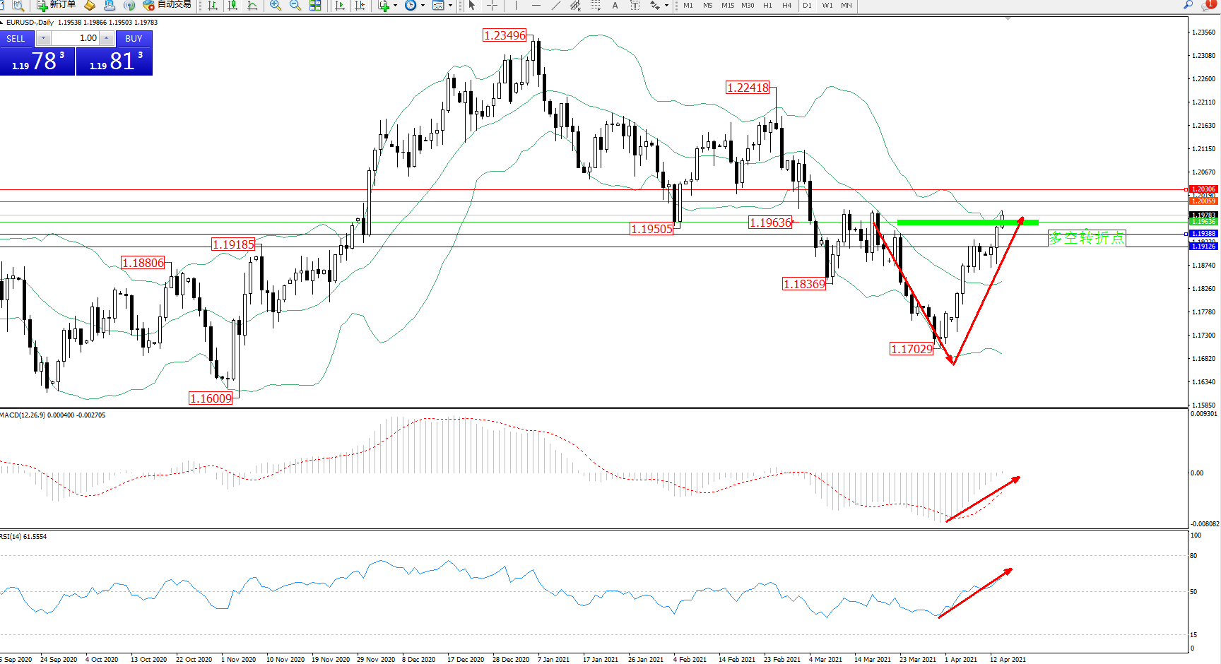 交易策略:1.19636上方看涨,目标1.20059、1.20306
