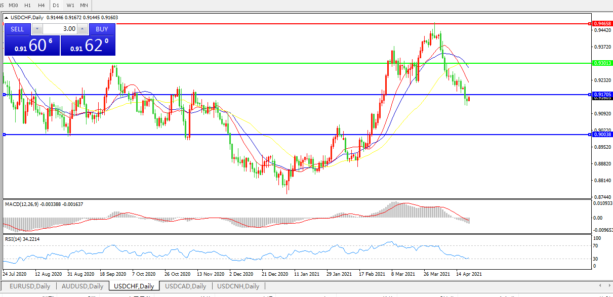 交易策略:0.9300下方看跌,目标0.9170、0.9000