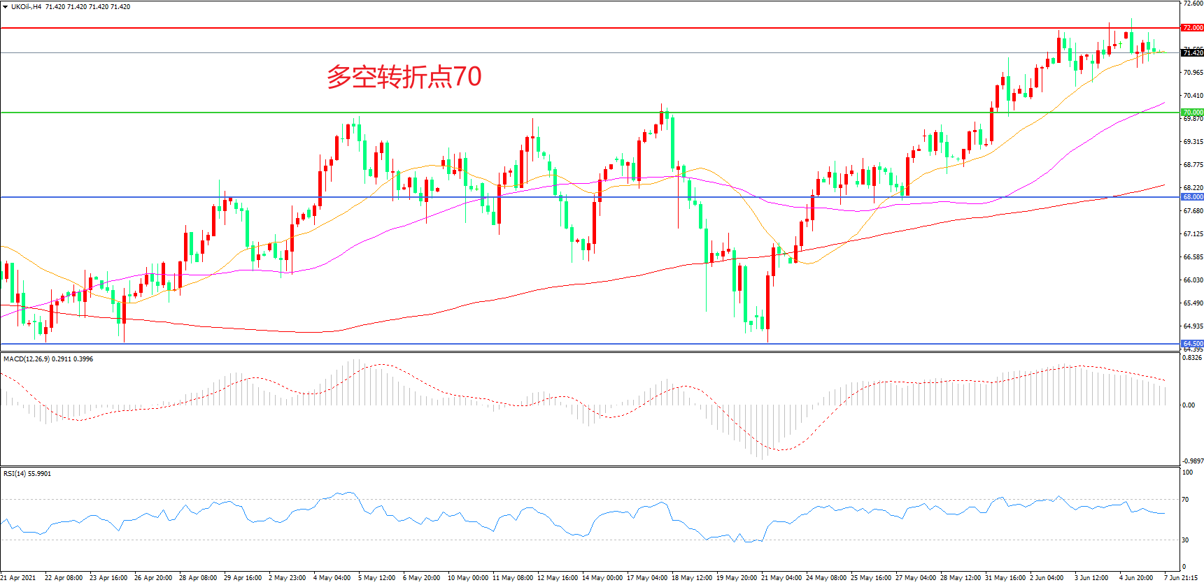 交易策略:在70.00之上看涨,目标72.00 75.00