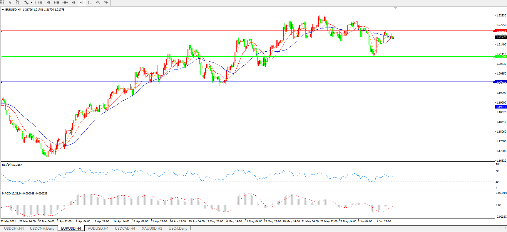 欧元兑美元EURUSD   4小时图: