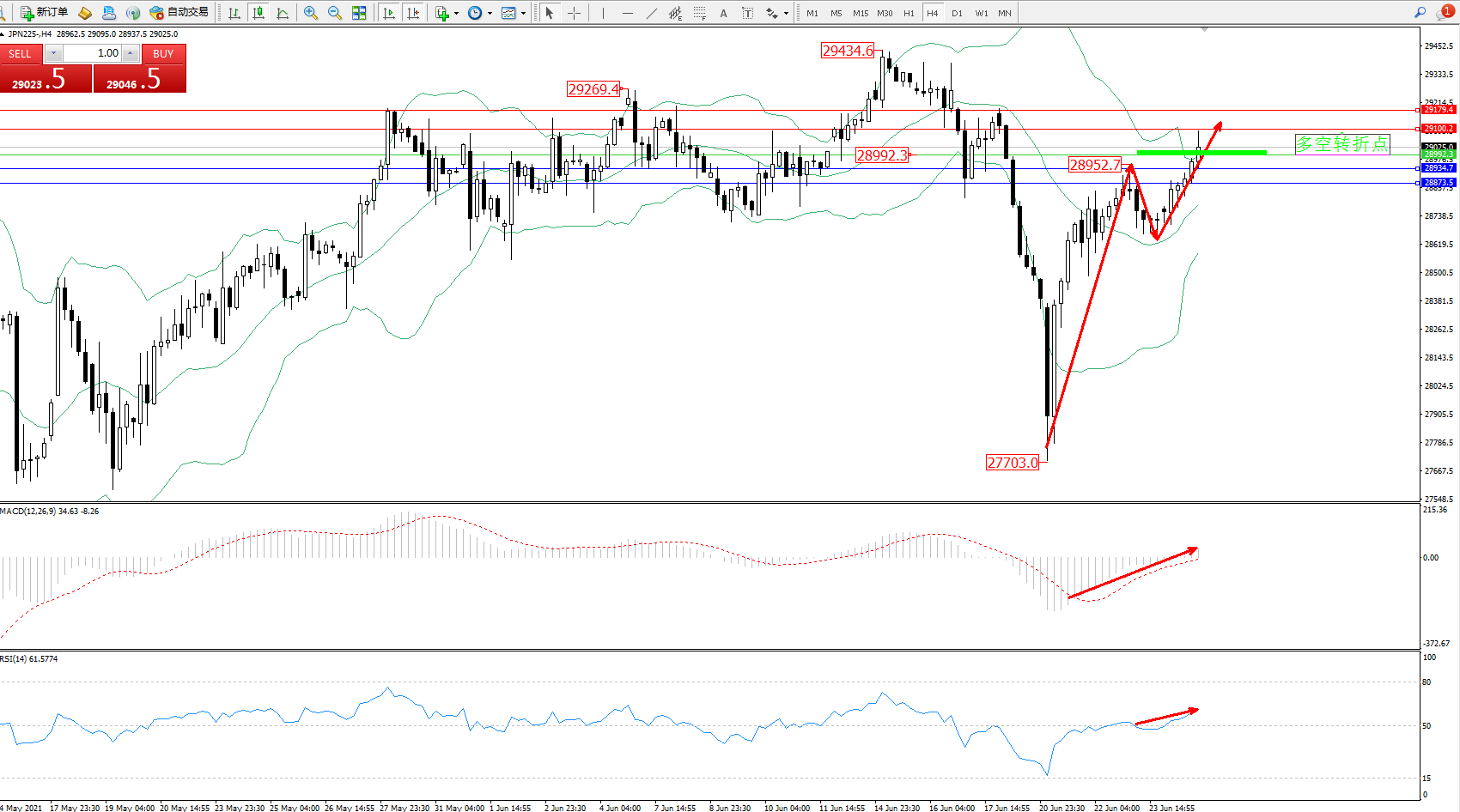 日经225指数6月24日(周四)收盘下跌13.39点,跌幅0.05%,报28861.50点。日本央行行长黑田东彦:日本经济的趋势是正在回暖。日本央行关注与疫情相关的措施很重要。日本经济正在好转,但由于新冠疫情,形势依然严峻。尽管消费停滞不前,但出口和生产仍在持续增长。将继续制定企业借贷措施。将一如既往地继续强有力的宽松政策。预计短期内通胀将保持在0%左右,但之后会稳步上升。日本的金融体系保持稳定。支持私人应对气候变化的努力有助于宏观经济。