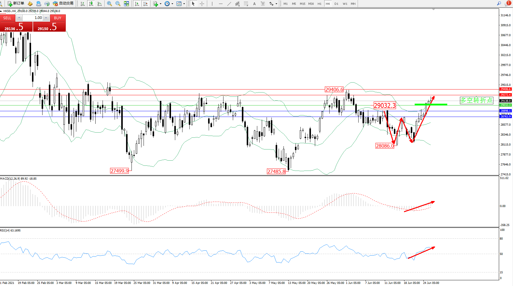 技术点评:空头动力延续布林带指标通道中下轨区间持续震荡下行,低位呈W底型态震荡反手上扬,触及上轨附近节点后节节攀升,多头动力未见止步迹象,布林带指标呈张口走势持续中,MACD指标低位多头动力持续震荡上破0轴线进入多头区域持续上移中,RSI指标处于50均衡线上方多头区域维持震荡向上拉升;