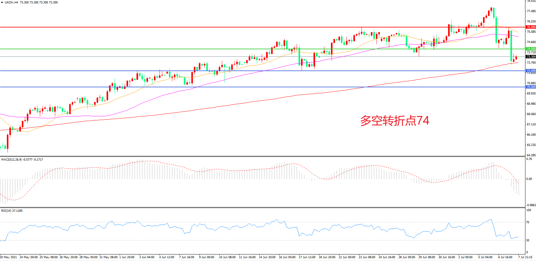 周三(7月7日),美国能源信息署(EIA)在官网上发布了7月短期能源展望报告。报告预计美国2021年的原油产量将出现下降,但OPEC+内部难以调和的分歧令多头表现谨慎,布伦特原油再度大跌,收报73.30美元/桶。市场情绪在一夜之间仿佛发生了巨大的变化,八月份没有增产成为短暂的事实,但谁也不知道OPEC之间的内部矛盾是否会引发更大的利空因素。