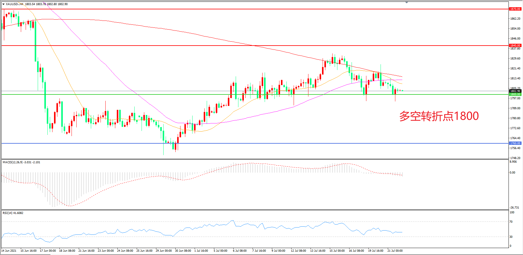 交易策略:  在1800.00之上看涨,目标1840.00         1870.00