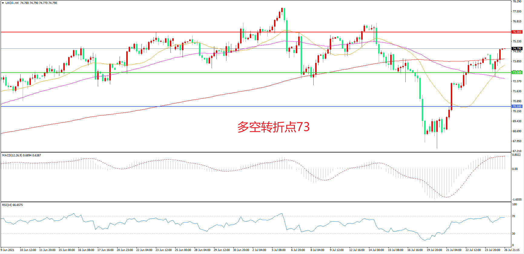 多空转折点:73.00