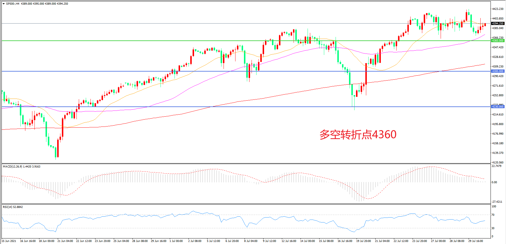 备选策略:在4360.00之下看跌,目标4300.00    4230.00