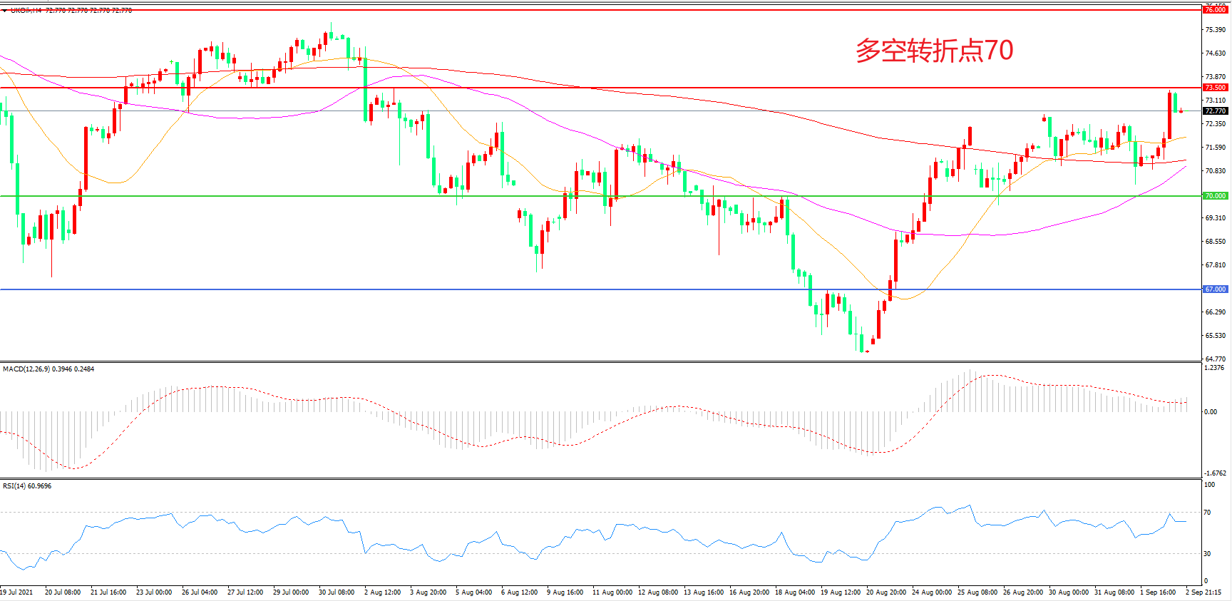 交易策略:在70.00之上看涨,目标73.50 76.00