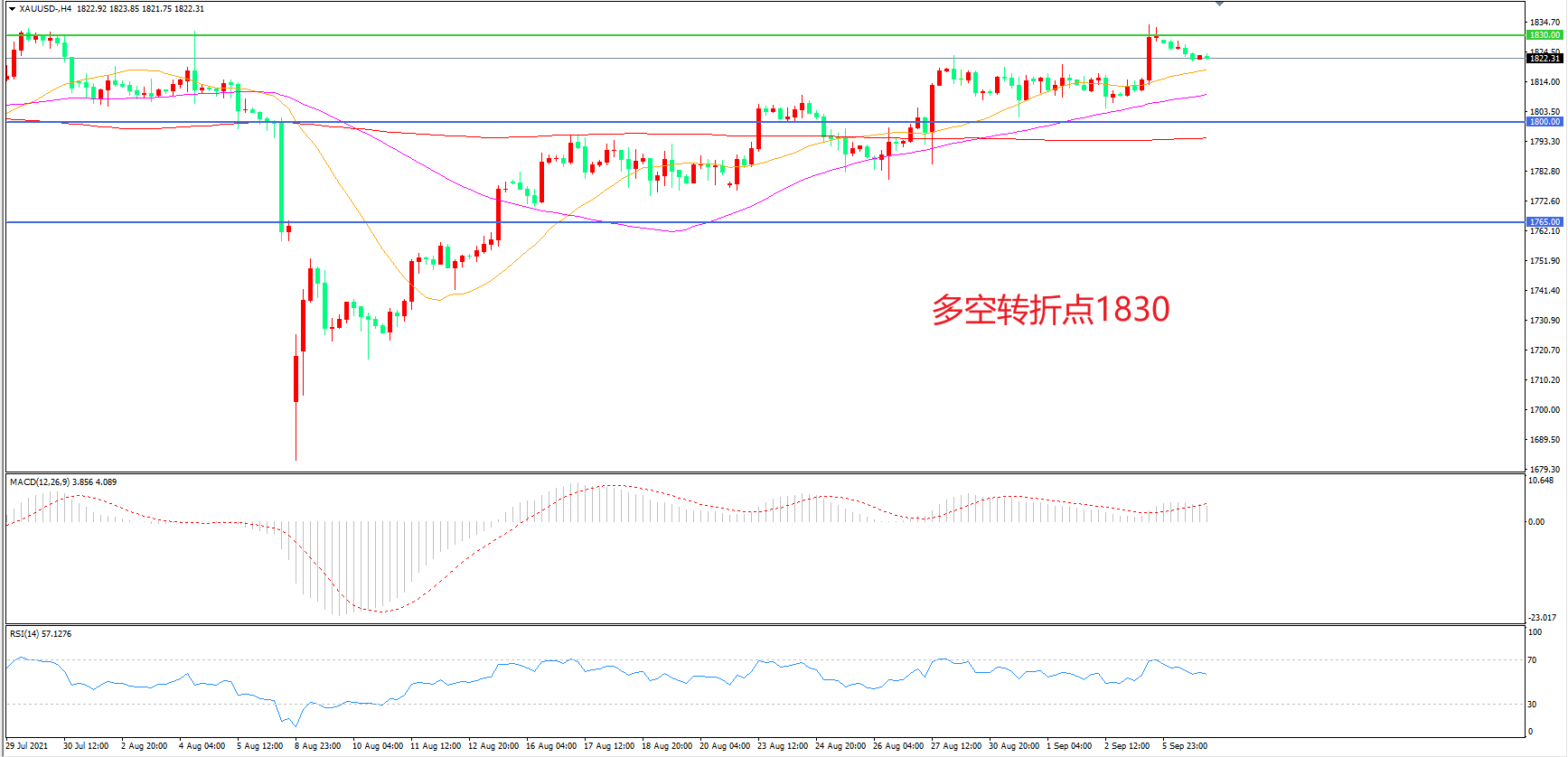 多空转折点:1830.00