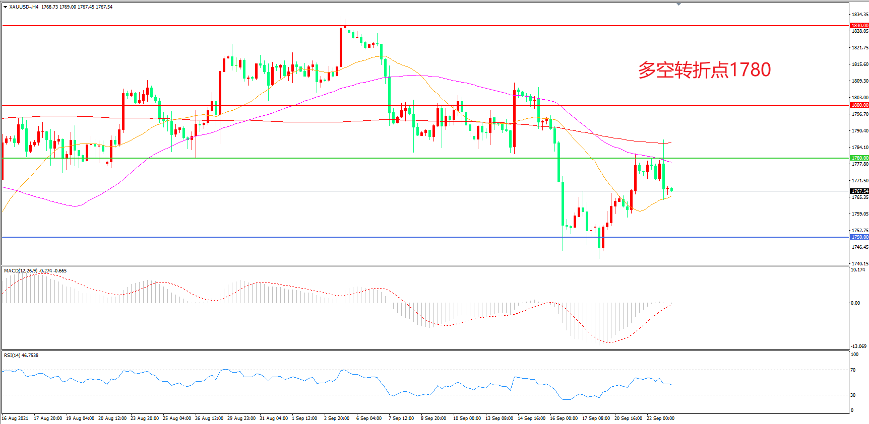 备选策略:在1780.00之上看涨,目标1800.00            1830.00