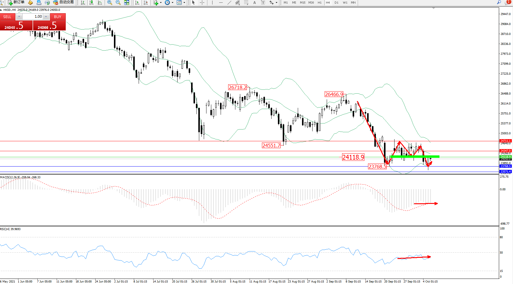香港恒生指数10月5日(周二)收盘上涨67.78点,涨幅0.28%,报24104.15点;A股继续休市,港股今日低开高走,恒指盘初大跌超300点刷新阶段新低,恒生科技指数跌0.31%报5955点。能源危机蔓延,石油股领衔上涨,钢铁股、黄金股、煤炭等能源股全线拉升上扬,中石油尾盘涨幅继续扩大,大幅收涨7.6%创阶段高价,中国铝业、五矿资源均涨超6%;大型科技股跌幅收窄,阿里巴巴、腾讯、美团跌超1%,盘中一度跌超2.5%,小米收涨1.46%。今日大市成交额不足千亿港元。