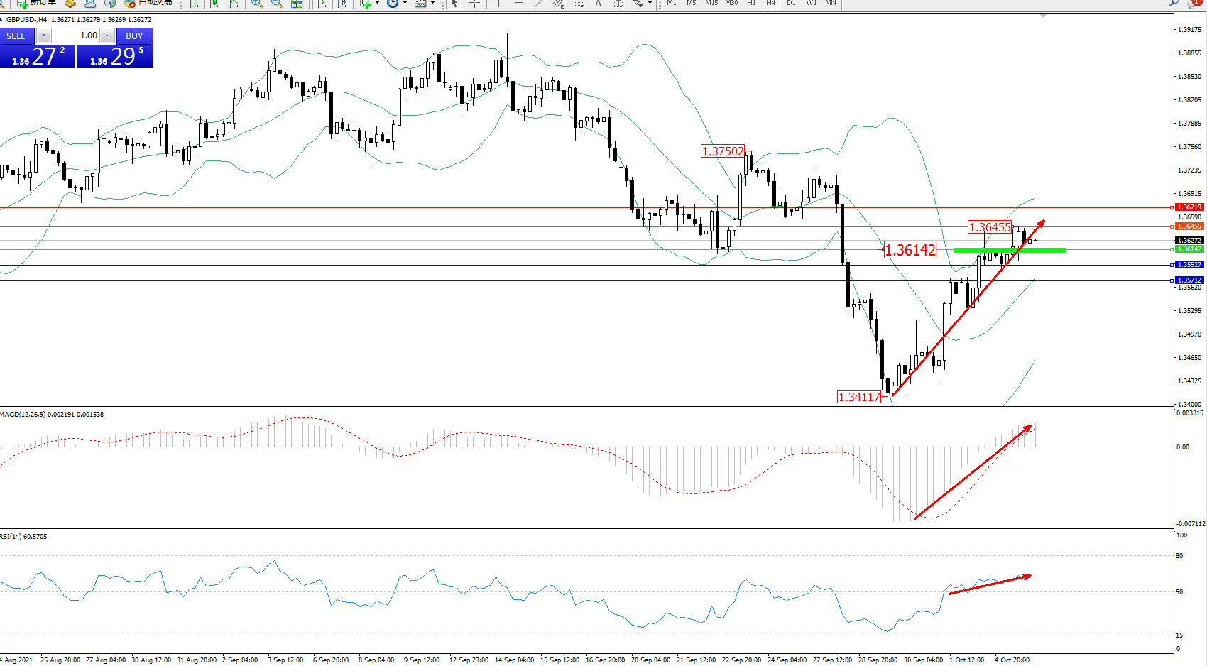 交易策略:1.36142上方看涨,目标1.36455、1.36719