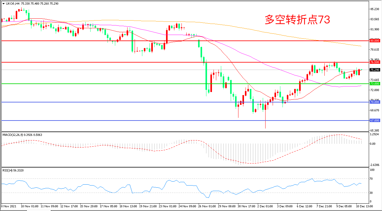交易策略:在73.00之上看涨,目标76.50 80.00