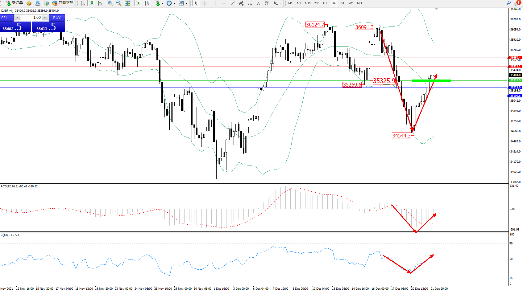技术点评:空头动力延续布林带指标下轨急速震荡下行,低位抵达34544附近得到支撑呈V型反转震荡上扬,进入布林带指标在轨持续震荡,多头动力有继续向上移动中,布林带指标呈收口走势,MACD指标低位多头动力维持震荡上移中,RSI指标低位多头动力维持震荡上扬至50均衡线上側整理;
