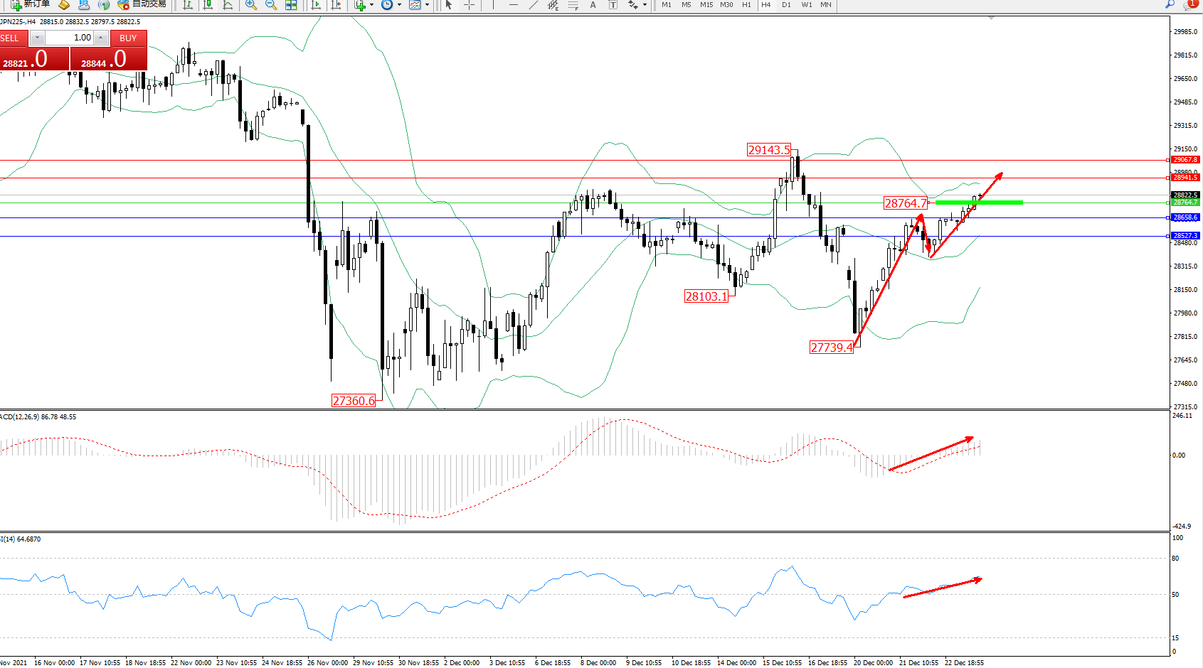 日经指数JPN225——4小时K线图显示: