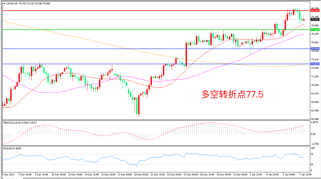 交易策略:在77.50之上看涨,目标80.00 83.00