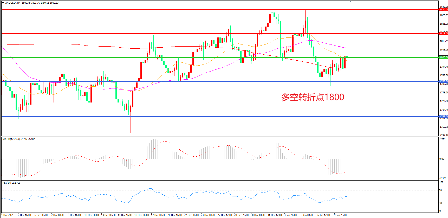交易策略:在1800.00之下看跌,目标1785.00       1763.00