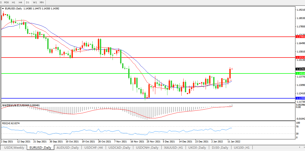 交易策略:1.1400上方看涨,目标1.1530、1.1700